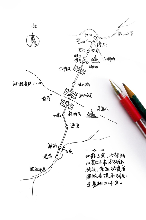 他在仙霞古道上,边走、边拍、边写。 以当代人的脚步、象征现代科技的数码相机、古老的笔,以及建筑师的眼光,以古道上的基本节点为单位,串联起一条地理事实与人文意义的古道,平平仄仄,音节清脆,音韵有致。