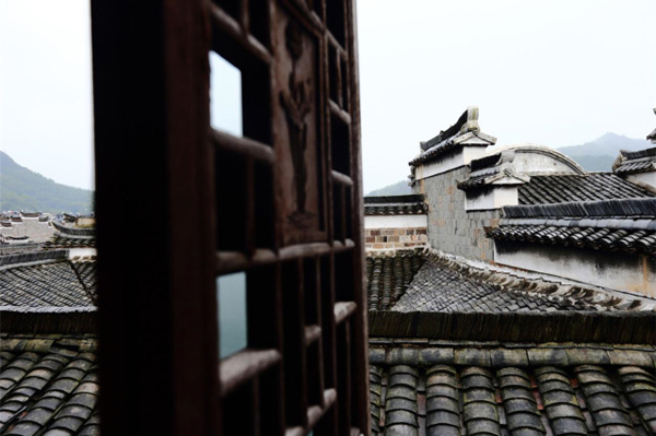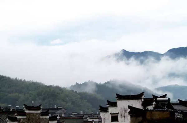 早晨推开旅馆的窗,“山似相思久,推窗扑面来”,廿八都古镇携着远山扑面而来,高低错落的屋舍瓦脊,犬牙交错的封火山墙,远处的山只露出峰巅,中间被一缕缥缈雾岚缠绕着。昨晚下了一场透雨,屋面青瓦湿湿濡濡,水墨效果,线条飘逸色彩灵动,设色纸本。