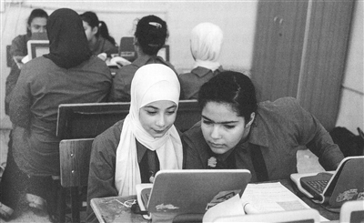 约旦首都安曼的“探索学校”,每个学生无论在哪里,都能人手一台电脑,以便随时访问无线网络。选自《重新想象学习——互联社会的学习变革》插图