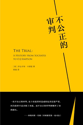 英国作家萨达卡特·卡德里描写的是跨越西方2000多年的审判史,作者把一个又一个非同寻常的审判拉进了寻常人的视野,从两千年前苏格拉底被审判,到持续发酵多时的萨勒姆女巫案,从法国大革命中断头台上的冤魂、莫斯科审判中无以计数的冤案,再到今日扑朔迷离的辛普森案……每个时期都出现了不少理想与现实错位、罪与罚不对等的案例,其中不乏或滑稽透顶,或迷雾重重的冤案。作者通过对历史深处案情的回溯,传达出对司法公正的呼唤。只是,“这一路上,正义与复仇、秘密与公开、迷信与理性不断纠缠”。