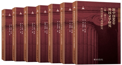 由申丹、王邦维带领编写团队高效协作完成的“新中国60年外国文学研究”丛书涵盖极广,包括6卷7册,分别为《外国诗歌与戏剧研究》《外国小说研究》《外国文学流派研究》《外国文学史研究》《外国文论研究》《外国文学译介研究》《外国文学研究口述史》。这套丛书以全新的视角,系统地梳理和深入探讨了新中国60年的外国文学研究,开拓性地将研究分门别类,在每一类里又分专题或范畴考察研究的特征、方法、热点和进程,注重与国外同期研究进行比较,创造性地将文献考查与口述调研相结合。