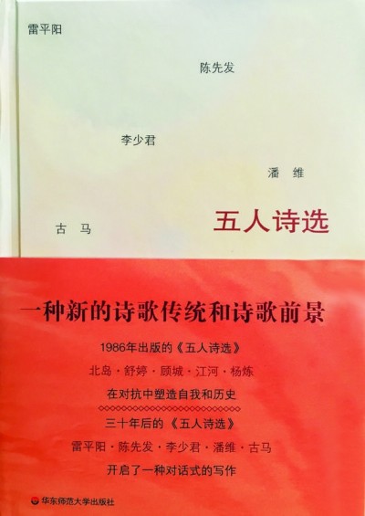 《五人诗选——雷平阳·陈先发·李少君·潘维·古马》(华东师范大学出版社2017年4月出版)中的五人,指的是雷平阳、陈先发、李少君、潘维、古马。他们的创作,成熟、稳健、深沉,体现着当代诗歌进入更为丰富、多元、复杂的发展阶段,诗人们在不同的向度上展开和呈现自己。
