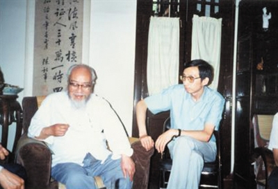 1986年夏,陈来博士毕业后,成为冯友兰(左)的助手。