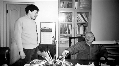 白峰在王世襄先生(右)家中