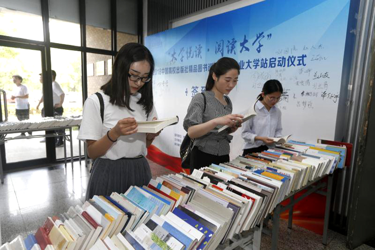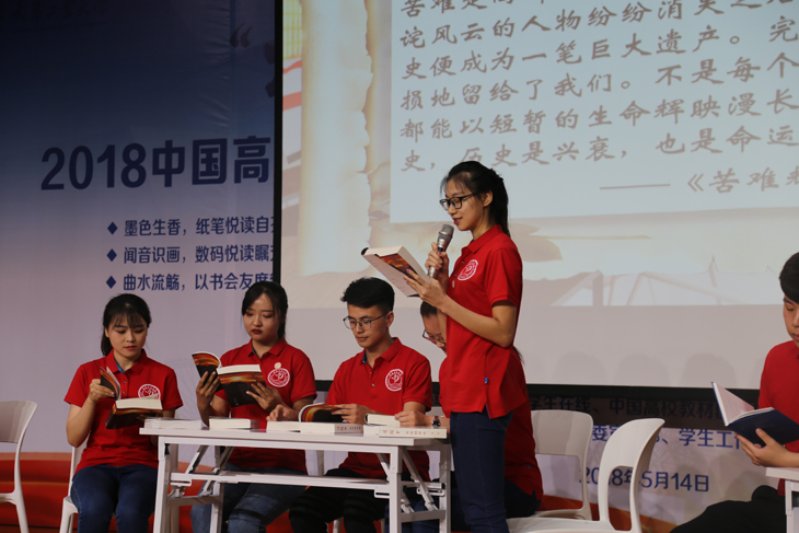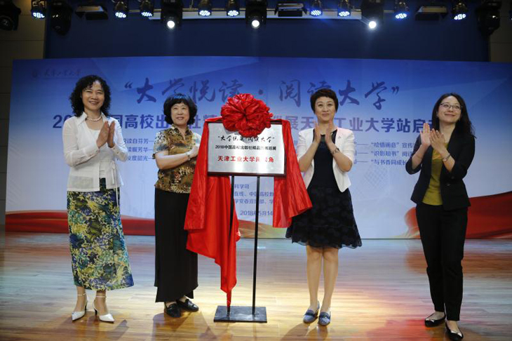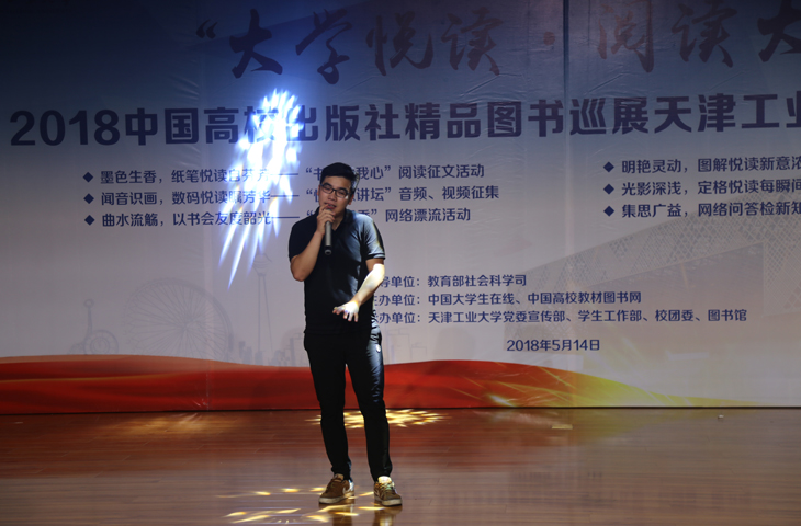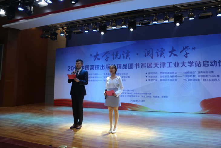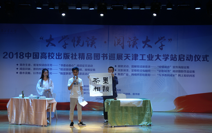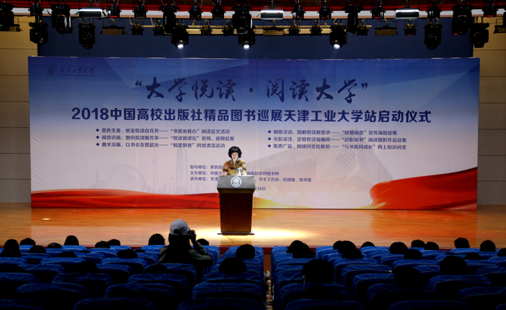 教育部社科司教学与出版处调研员林丽,天津工业大学校党委副书记刘亚男,中国大学生在线副主任姬林,中国高校教材图书网负责人浑燕珍等领导和嘉宾出席了启动仪式。校党委宣传部、党校、学工部、教务处、团委、图书馆负责人,各学院领导、学生代表共300余人参加。校党委宣传部部长王军杰主持启动仪式。 天津工业大学校党委书记连洁同志十分关心本次活动,她会前寄语同学们多读书读好书,切实用习近平新时代中国特色社会主义思想武装头脑。 天津工业大学刘亚男副书记致辞。她现场讲解了习近平总书记酷爱读书的品格和读书的心得,希望同学们以习近平总书记为榜样,在新时代读万卷书,行万里路。刘亚男副书记提出,一是感谢并期望教育部社科司、中国大学生在线、中国高校教材图书网提供更多的平台和资源;二是希望学校各级部门、各个学院能够组织丰富多彩的读书活动,使读书成为学校的一种时尚追求;三是希望同学们多读书,读好书;联系实际,知行合一。希望同学们牢记习总书记嘱托,将阅读作为一种信仰去追求,让阅读蔚然成风。 教育部社会科学司教学与出版处调研员林丽介绍了“大学悦读•阅读大学”系列活动的设立初衷、开展情况以及取得的丰硕成果。她希望大学生珍惜在校期间的美好时光博览群书,更好地做到习近平总书记所提出的“勤学、修德、明辨、笃实”,才能正确认识世界和中国发展大势,正确认识中国特色和国际比较,全面客观认识当代中国、看待外部世界,正确认识时代责任和历史使命,正确认识远大抱负和脚踏实地,使自己成长为国家的栋梁之才,真正成为担当民族复兴大任的时代新人;她希望通过这个活动,能够进一步促进大学出版社把社会效益放在首位,积极引导大学的人才培养、科学研究、社会与文化传承创新和国际交流合作,不忘初心,牢记宗旨和使命,为大学生健康成长和全面发展多出精品、多出好书,这是高校出版社的责任和使命,也有助于大学出版社在全行业当中起到引领和示范作用;她还希望主办方大学生在线和中国高校教材图书网进一步发挥好桥梁和纽带的作用,及时将高校师生的阅读需求和高校出版社的精品力作做好连接。 随后,林丽、刘亚男、姬林、浑燕珍共同为“大学悦读•阅读大学” 2018中国高校出版社精品图书巡展天津工业大学阅读角揭牌。 接下来是天津工业大学师生用心创意的读书和文艺展演节目,“青马”学子以“学习之路,读习总书记的书”为主题带来了激动人心的朗诵,将经典书籍的魅力传递给台下每一位学子;该校阅读之星代表朗诵的《文韵乡愁》,充分展现了当代大学生的追梦情怀;才艺表演环节,帅气男生独唱《经典咏流传》大气磅礴;书法、茶艺表演《墨韵茶香》,意境悠远,让大家在欢笑与憧憬中充分感受到中华优秀传统文化博大精深的无穷魅力。 “大学悦读•阅读大学”中国高校出版社精品图书巡展活动自2014年以来已成功举办五届,五年来,活动走进了中国人民大学、陕西师范大学、武汉大学、云南民族大学、北京师范大学等一千两百余所高校,带去了大学出版社25702本精品图书,数十万高校师生广泛参与,在高校师生中产生了广泛的影响,得到了社会各界的普遍关注,构建了书香校园,推动了全民阅读。