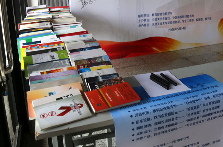 图1 启动仪式现场 本网讯 5月14日上午,教育部社科司指导,中国大学生在线和中国高校教材图书网主办的 “大学悦读•阅读大学”2018中国高校出版社精品图书巡展天津工业大学站启动仪式在天津工业大学管理学院141学术报告厅举行。