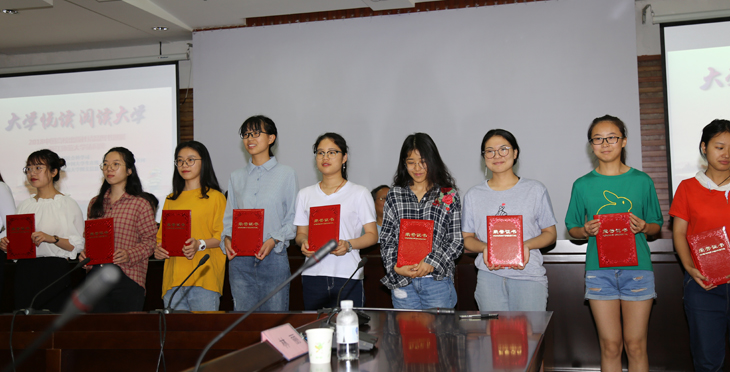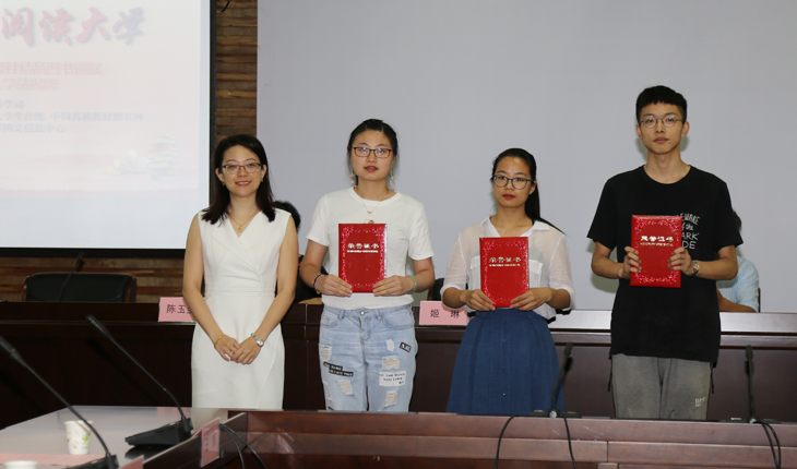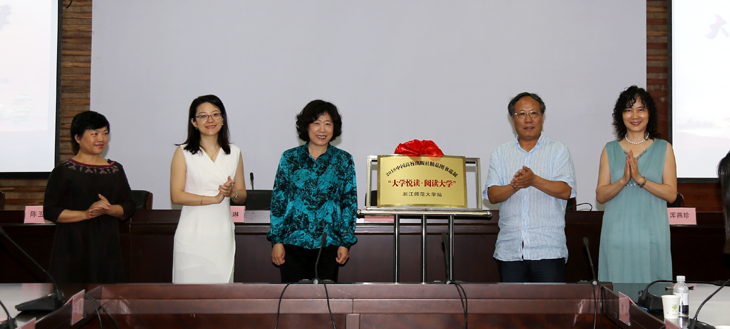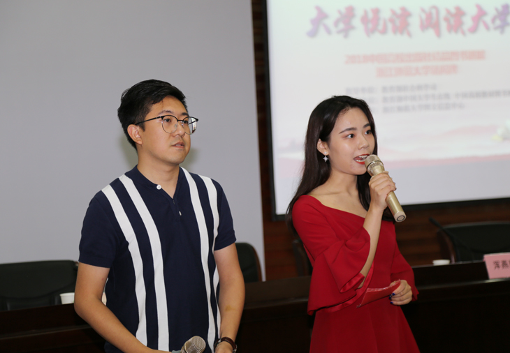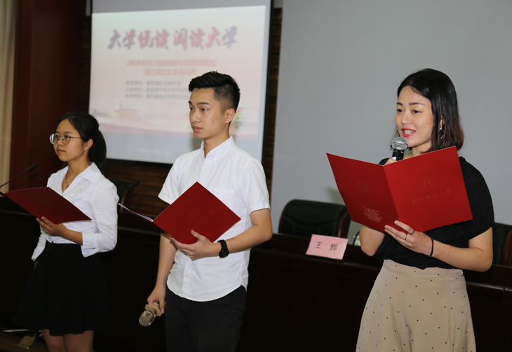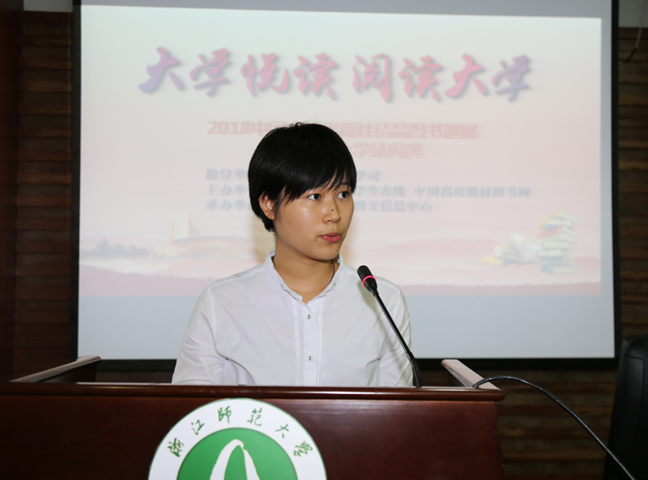 图1 本网讯 5月31日上午,教育部社科司指导,中国大学生在线和中国高校教材图书网主办的“大学悦读•阅读大学”2018中国高校出版社精品图书巡展浙江师范大学站揭幕仪式在浙江师范大学图文信息中心七楼会议室举行。 浙江师范大学副校级巡视员王辉,教育部社科司教学与出版处调研员林丽,中国大学生在线副主任姬琳,中国高校教材图书网负责人浑燕珍等领导和嘉宾出席了揭幕仪式。校本科教学部、学生处、研究生院、团委、图文信息中心、后勤集团等部门负责人和各学院师生代表共100余人参加了本次活动。校图文信息中心主任、图书馆馆长、人文学院江南文化研究中心秘书长陈玉兰主持揭幕仪式。 浙江师范大学副校级巡视员王辉致辞。他在致辞中表示,本次巡展共收到来自高等教育出版社等33家出版社赠予的600余册图书,这是一批有优质阅读内容的精品力作,学校非常感谢教育部社科司的悉心指导以及中国大学生在线和中国高校教材图书网的大力支持。他希望全体师生继续把阅读当作一种生活习惯、一种人生态度、一种精神追求,为实现中华民族伟大复兴中国梦贡献更多智慧和力量。 教育部社会科学司教学与出版处调研员林丽向大家介绍了“大学悦读•阅读大学”系列活动的设立初衷、开展情况以及取得的成果。她讲道,我国是一个历史悠久的文明古国,自古以来就有崇尚读书的优良传统,继承和发扬这种优良传统,对于培育和践行社会主义核心价值观,提高全民族的思想道德和科学文化素质,建设文化强国,实现中华民族伟大复兴的中国梦,具有重要的意义。党和国家高度重视全民阅读,把全民阅读上升为国家战略。2014年以来,连续五年的全国两会,全民阅读都写入了政府工作报告。习近平总书记指出,好学才能上进,好学才有本领。李克强总理也曾经说过,书籍和阅读是人类文明传承的主要载体,用闲暇时间来阅读是一种享受。希望同学们珍惜在校读书的美好时光,充分利用业余时间,如饥似渴地博览群书,增长才干。只有多读书读好书善读书,才能够更好地做到习近平总书记所教导的那样勤学修德,笃实明辨,才能正确认识世界和中国发展大势,正确认识中国特色和国际比较,正确认识时代责任和历史使命,正确认识远大抱负和脚踏实地,将阅读内化为我们学习和生活的精神力量。在“大学悦读•阅读大学”中增长人生智慧,成长为担当民族复兴大任的时代新人,为实现中华民族伟大复兴的中国梦贡献我们的青春年华和聪明才智。 随后,王辉、林丽、姬林、浑燕珍共同为“大学悦读•阅读大学”2018中国高校出版社精品图书巡展浙江师范大学站巡展活动揭幕。 现场为在校“第十届读书节”期间,学校举办的“阅读点亮初心 书香浸润校园活动”获得“21天经典阅读之旅” 的一二三等奖学生颁奖,为读书节首次举办的“十佳书香寝室”颁奖。 颁奖完毕,连续3年蝉联学校“阅读明星”称号的文化创意与传播学院民俗专业的研究生于伟分享了读书心得。 接下来是浙江师范大学学生精彩诵读“奋斗•修为•传承”经典片段,第一部分诵读作家路遥小说《平凡的世界》、第二部分诵读教育科学出版社《读书是教师最好的修行》、第三部分诵读习近平在《光明日报》发表署名文章《弘扬“红船精神”走在时代前列》,红船精神: 秀水泱泱、红船依旧,时代变迁、精神永恒。 精彩诵读使同学们认识到要以习近平新时代中国特色社会主义思想为指导,牢固树立四个意识,忠诚维护党的领导核心,坚定理想信念,牢记根本宗旨,坚持以人民为中心的发展思想,全心全意为人民服务,为实现党的十九大提出的奋斗目标,实现中华民族伟大复兴的中国梦,贡献青春力量。 “大学悦读•阅读大学”中国高校出版社精品图书巡展活动旨在通过聚合中国高校出版社精品图书资源,引导青年学生多读书、会读书、读好书,提升学生人文素养和阅读品位。自2014年以来已成功举办五届,五年来,活动走进了中国人民大学、陕西师范大学、武汉大学、云南民族大学、北京师范大学等一千两百余所高校,带去了大学出版社25702本精品图书,数十万高校师生广泛参与,在高校师生中产生了广泛的影响,得到了社会各界的普遍关注,构建了书香校园,推动了全民阅读。