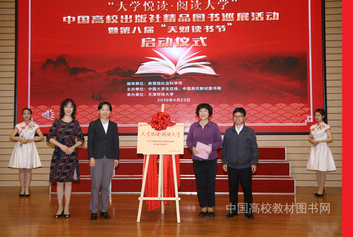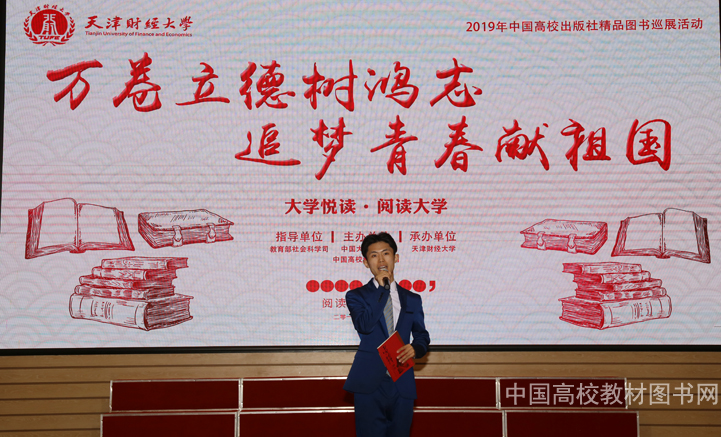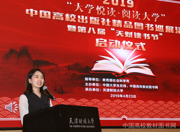 本网讯 2019年4月23日下午,在“世界读书日”到来之际,由教育部社会科学司指导,中国大学生在线、中国高校教材图书网主办的2019年“大学悦读•阅读大学”中国高校出版社精品图书巡展活动暨第八届“天财读书节”启动仪式在天津财经大学月牙报告厅举办。 教育部社会科学司教学与出版处调研员林丽、天津财经大学党委副书记张弢、天津大学出版社书记兼总编宋雪峰、中国大学生在线发展中心主任张江艺、副主任姬琳、中国高校教材图书网负责人浑燕珍等领导和嘉宾出席活动。天津财经大学宣传部、图书馆、学工部负责人和部分师生代表参加了活动。天津财经大学图书馆馆长唐承秀主持启动仪式。 天津财经大学党委副书记张弢致辞。她说,天津财经大学近年来以提升学生人文素质,促进人才多元化发展为导向,将图书阅读活动、阅读推广活动体系化、精品化、品牌化,构建了以“天财读书节”为代表的一系列具有鲜明天津地域文化和天财特色的阅读推广品牌,在推进全民阅读、创建书香校园中发挥了积极作用。她表示,2019年,天津财经大学将充分发挥立德树人,传播中华优秀传统文化,大力倡导全民阅读优良传统,以“大学悦读•阅读大学”中国高校出版社精品图书巡展活动为契机,充分用好本次获赠的各高校出版社精品图书,引导广大师生多读书、读好书,营造浓郁的校园读书氛围。 中国大学生在线发展中心主任张江艺代表活动主办方介绍了2019“大学悦读•阅读大学”中国高校出版社精品图书巡展活动的组织情况。他说,今年是新中国成立70周年,活动主办方将聚焦爱国主义教育,开展更加符合师生需求的读书活动,重点推广中国高校出版社精品图书巡展活动,向青年学生推荐思想精深、艺术精湛、制作精良的精品图书,以阅读经典推动读书热潮,引导同学们领悟阅读之美,与祖国同行,奏响当代大学生励志成才、振兴中华的时代最强音。 教育部社会科学司教学与出版处调研员林丽代表教育部社科司,对活动的顺利举办表示祝贺。她说,为深入学习贯彻习近平新时代中国特色社会主义思想和党的十九大精神,努力培养担当民族复兴大任的时代新人,教育部社科司连续六年举办“大学悦读•悦读大学”中国高校出版社精品图书巡展系列活动,引导广大师生读马列经典,读中华优秀传统文化经典,读中外学术经典和专业经典,进一步增强了青年学生民族文化自信和价值观自信,进一步提升了大学生思想道德素质和文化素养。林丽调研员就进一步深入持续开展好“大学悦读•阅读大学”中国高校出版社精品图书巡展系列活动提出三点希望:一是希望高校落实立德树人这一根本任务,使读书学习成为青年学生坚定理想信念、厚植爱国情怀、加强品德修养、增长知识见识、培养奋斗精神的有效手段,培养德、智、体、美劳全面发展的社会主义建设者和接班人;二是希望高校出版社全面贯彻党的教育方针和出版方针,坚持把社会效益放在首位,自觉承担育人使命,坚持正确的出版导向,加强选题创新和策划,大力推出讴歌党、讴歌祖国的精品力作,在传播社会主义先进文化、构建中国特色哲学社会科学中发挥应有作用。三是希望活动主办方继续发挥好桥梁作用,更加关注师生阅读需求并及时反馈给出版社,促进出版供给侧结构调整和优化,积极拓展活动平台,不断创新活动形式,加强沟通协作,助力探索校园文化建设新途径,带动构建社会书香氛围。 随后,教育部社会科学司教学与出版处调研员林丽、天津财经大学党委副书记张弢、中国大学生在线发展中心主任张江艺先生、中国高校教材图书网负责人浑燕珍共同为本次活动揭幕。林丽调研员代表活动指导单位向天津财经大学赠送图书。2019“大学悦读•阅读大学”中国高校出版社精品图书巡展活动暨第八届“天财读书节”正式启动。 天津大学出版社书记兼总编宋雪峰作为高校出版社代表讲话。他说,图书出版要坚持以社会主义核心价值观为引领,坚持以人民为中心的创作生产导向,遵循出版生产传播规律,把社会效益放在首位的指导思想。宋雪峰总编重点介绍了《悠远的祁红—文化池州的“茶”故事》《天津滨海文化中心》两本新书,从历史建筑保护和现代建筑艺术传播等不同角度记录了新中国时代的变迁,并表示天大出版人就是要用这样的书籍致敬历史,传承文明,面向未来。他表示,借助“大学悦读•阅读大学”活动契机,天津大学出版社将同全国大学出版社一起继续为大学师生、社会大众出版更多精品图书。 天津财经大学人文学院教师孟繁静作为教师代表发言。她认为,终身学习、每日阅读是老师的立业之本,是专业成长的支点;而大学生是祖国复兴之路的建设者,伟大梦想的受益者,这是历史赋予的使命,也是历史给予的机遇,如何把握时代机遇、担起历史重任,唯有读书!她说,作为今年活动启动仪式的承办方,学校读书文化节推出了一系列品牌读书活动,相信通过大家共同努力,大学读书活动一定能够成为一种时尚,一种生活方式,一种美好的追求! 天津工业大学人文学院广播电视专业2018级硕士研究生陈佳作为学生代表分享了读书心得。她说,“大学悦读•阅读大学”活动让工大学子不仅有机会接触到优秀的书籍,更让他们通个这个平台认识了一群志趣相投的书友,大家以书会友,交流读书心得,既获得了友