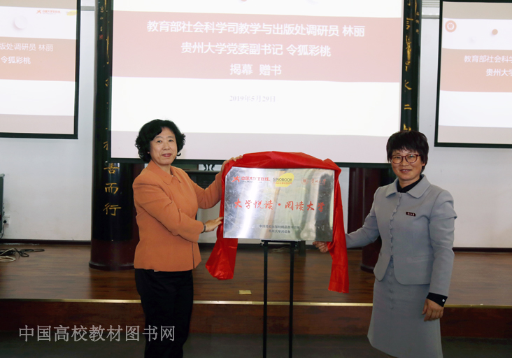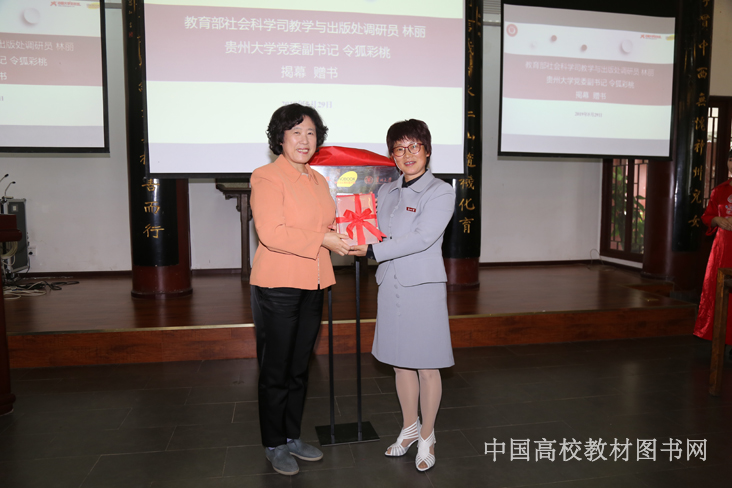随后,教育部社科司教学与出版处调研员林丽,贵州大学党委副书记令狐彩桃,为专区揭幕并赠书。
