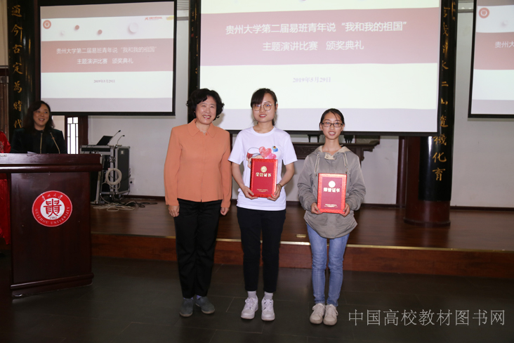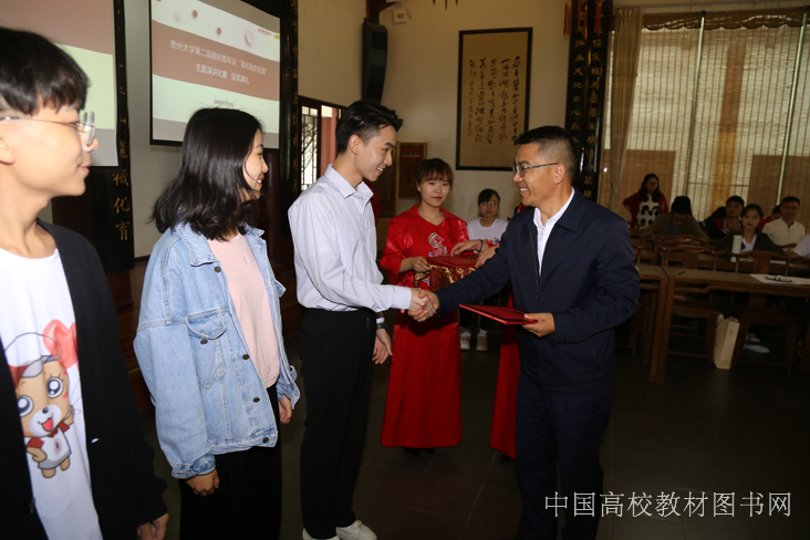 中国大学生在线副主任姬琳、中国高校教材图书网负责人浑燕珍为为五名三等奖颁奖,贵州大学学生工作部(处)部长刘治军为三名二等奖颁奖,教育部社科司教学与出版处调研员林丽为二名一等奖颁奖,贵州大学出版社社长闵军为一名金牌队长颁奖,贵州大学党委副书记令狐彩桃为一个优秀团队颁奖。