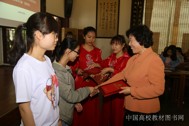 中国大学生在线副主任姬琳(左一)中国高校教材图书网负责人浑燕珍(右一)为三等奖颁奖