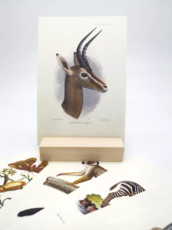 图|附赠的随书月历卡(右)与木质卡座(左)