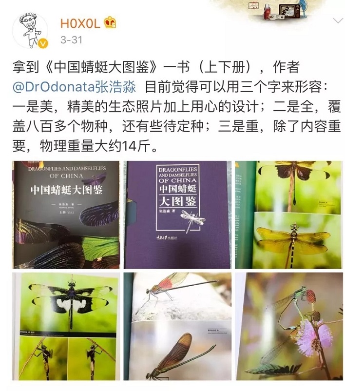 最后,我想说,张浩淼老师对蜻蜓的热爱已经到达了信仰的高度,不然无法解释他花了人生最黄金的10年来认真严谨滴打造《中国蜻蜓大图鉴》。每一本好书背后都有它的辛酸,但是张老师的故事让我看到的是一种积极的态度,羡慕他可以把自己的爱好变成自己的事业。
