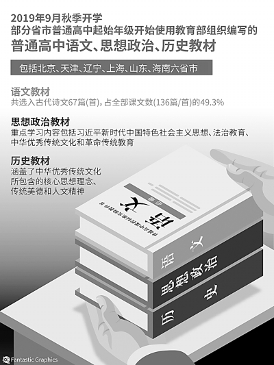 主持人:教材建设是国家事权,体现国家意志。尤其是思想政治、语文和历史三科教材,意识形态属性强,具有重要的育人作用。请问三科教材如何把握正确的思想导向?如何全面体现习近平新时代中国特色社会主义思想?