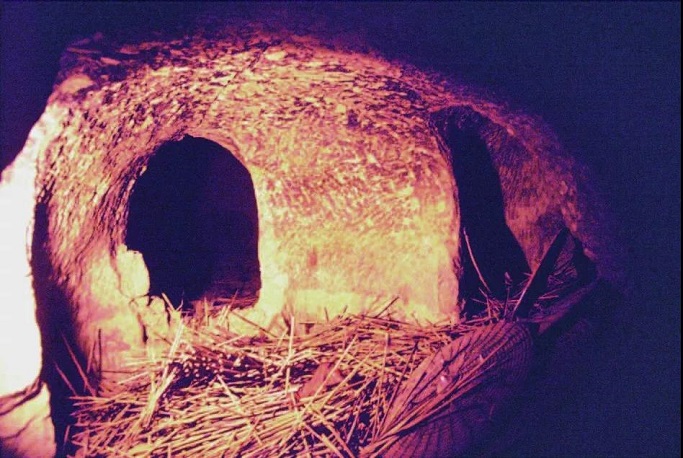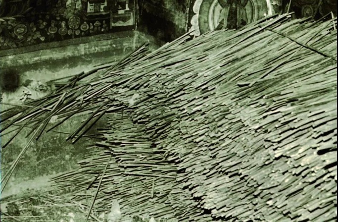 山顶4号窑洞内堆积的箭杆及藤盾牌