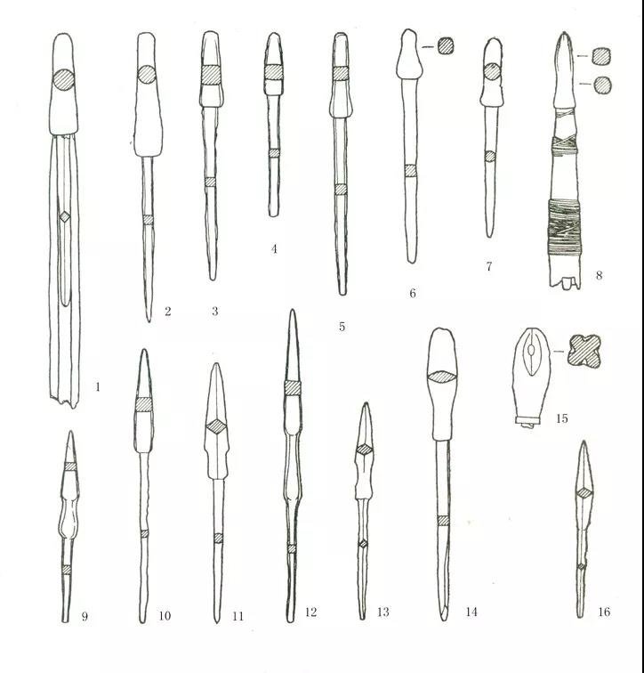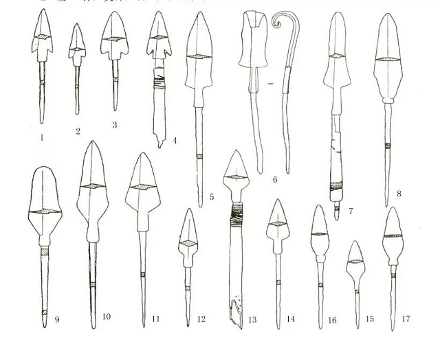 有几种铁箭镞较宽,锋锐刃利,射入人体创口较大,犹如刺入一柄小匕首,两面的偏脊又可以起到血槽的作用,杀伤力很强。另有一种铁箭镞的两翼带倒尖,射入人体后不易拔出,若强拔箭镞会扩大创口,更是令人生畏。还有一种铁箭镞像一把合拢的伞,但头部钝圆,不适于战斗。听藏族同胞讲,这种铁箭镞是专门用来射鸟的,即可击鸟落地,又不令其破皮出血。