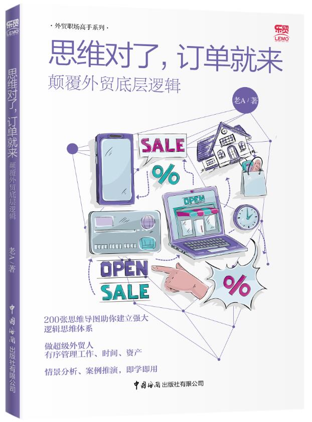 书名:思维对了,订单就来 : 颠覆外贸底层逻辑 ISBN:978-7-5175-0381-1 印次:1-1 作者:老A 定价:58.00 出版社:中国海关出版社 出版日期:2019-10-01 内容简介: