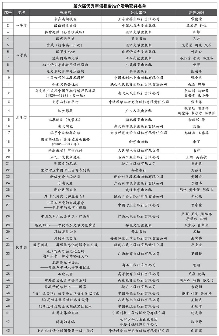 第六届优秀审读报告推介活动获奖名单