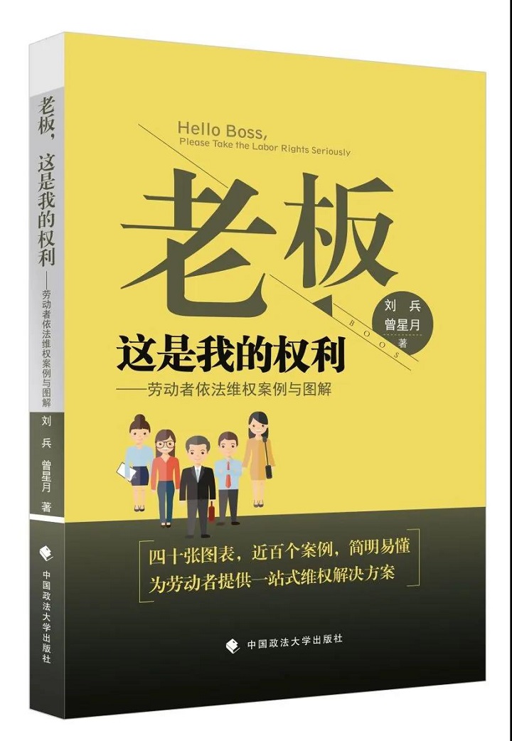 老板,这是我的权利——劳动者依法维权案例与图解 作者:刘兵、曾星月 著 ISBN:978-7-5620-9291-9 定价:49.00元 中国政法大学出版社2019年11月