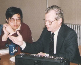 1989年春天奥利弗·威廉姆斯教授来中国访问在体改所做报告,张维迎做翻译(图来自网络)