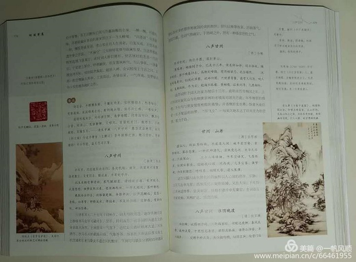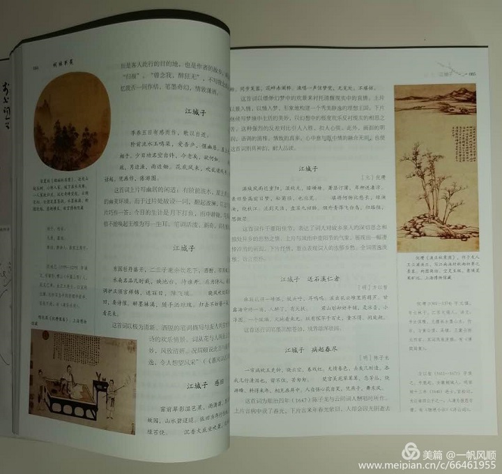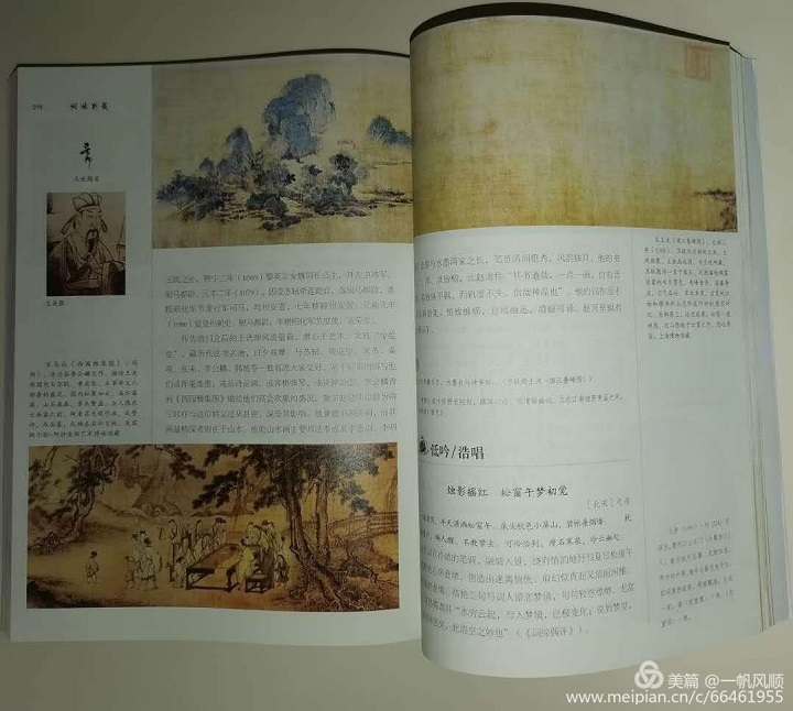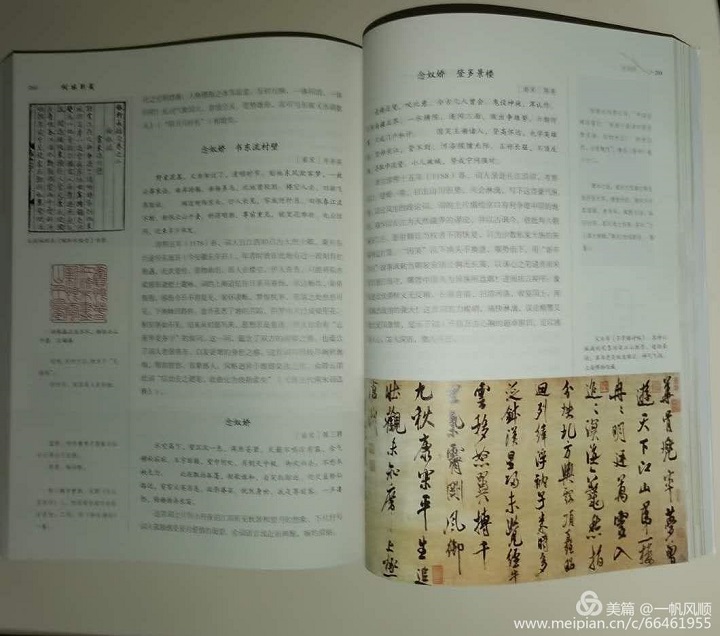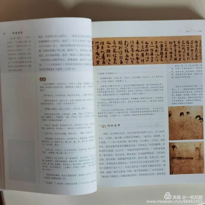 出版家的独运匠心,将词选设计编排装帧如此精美,我们不由得从内心赞叹:如此浩繁的工程,非有十年磨一剑的坚韧与恒心,岂能办成!捧读《词林别裁》,不由心生感慨:多年前,我在中学任教语文,苦于找不到一本词学参考书而忧心,若当时能得到这样一部图文并茂的词学著作该是多么幸运啊! 品读卢先生的《词林别裁》,我们在欣赏词的意境美的同时,也欣赏了其他形式的艺术美。编著者随正文配入与词意境契合的古今书法、绘画、篆刻、词人手迹画像及历史遗迹图片等多种艺术品类,打开书卷犹如走进一个文学博物馆,琳琅满目的艺术珍品,令人应接不暇。这样一部将多种艺术式样并列其中的著作,不仅显示编著者博学多才,也给读者以丰富的想像空间,极大地增添了读者的审美情趣与阅读快感。 卢先生的《词林别裁》,在总结前人词作选编经验的基础上进行了重大的创新。按五十八个词牌精选从唐至近代的一千余首词作,按“华音流韵” “临风赏读” “古今汇评” “词人心史” “词林逸事” “低吟/浩唱” “倚声依谱”等栏目编排,将欣赏、研究、创作三者有机结合,使读者对千年以来的词林名作有一个全方位的了解,又从各代学者的见解对比研究中加深对词作的记忆理解。编著者充分考虑今人进行词创作的难度,以词牌为中心选择作品,展开内容编排,这样读者在欣赏名作,掌握词牌格律后,就能“倚声依谱”,进行词创作。可以说,《词林别裁》也是一部难得的词学写作的教科书。 漫步在传统文学的美学长廊,我们欣然地感到《词林别裁》这株奇花异卉的美学力量。她在古典诗词承启下中起着不可替代的作用。在网络时代,网媒的便利快捷渐渐抢占纸媒的空间,这就要求出版者以更精美的作品吸引读者。《词林别裁》凝聚着编著者出版者的心血与智慧,在众多出版物中独树一帜,满足了读者特别是青少年一代对内容丰富版本新颖读物的渴求。
