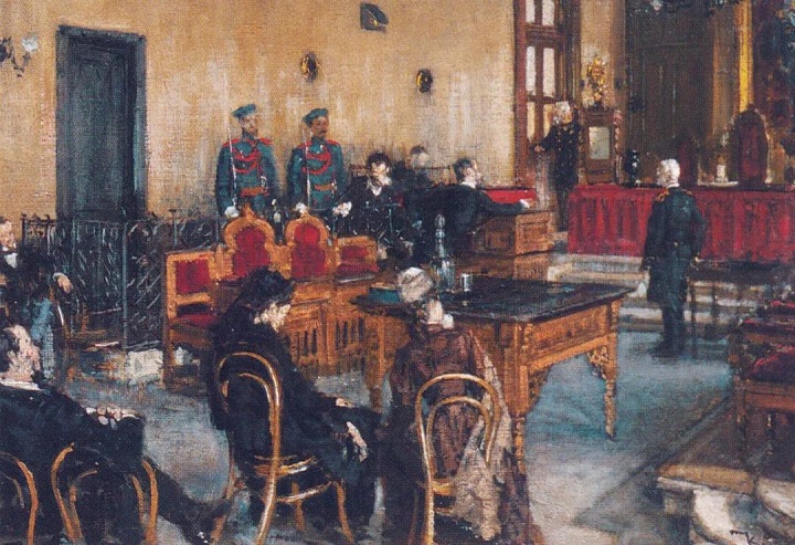 等待法庭判决 (画稿) (1895 年) К. А. 萨维茨基 画 藏于国立特列齐亚科夫画廊a