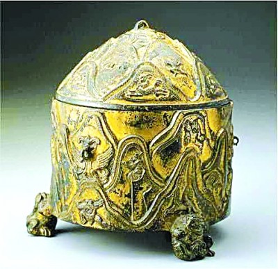 东汉铜鎏金山纹兽足樽,现藏于台北故宫博物馆 资料图片