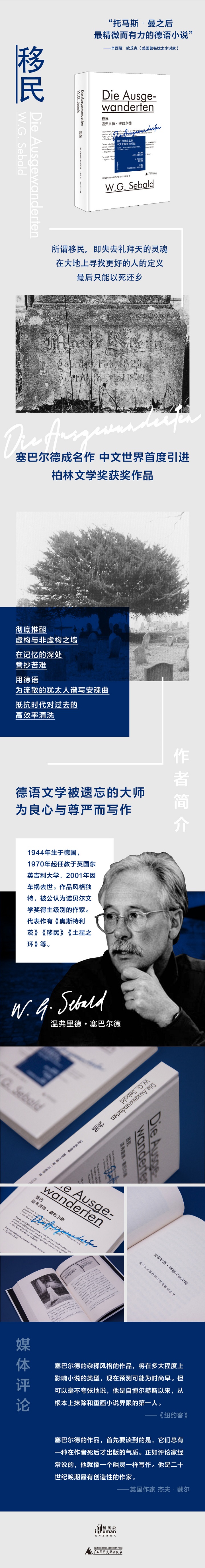 《移民》 [德]温弗里德·塞巴尔德(W.G.Sebald) 相关图书 版本:新民说 |广西师范大学出版社 2020年3月 内容简介 所谓移民,即失去礼拜天的灵魂