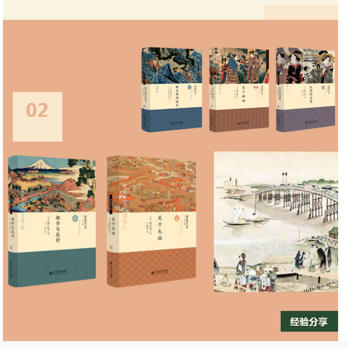 作为“日本民俗学之父”,柳田国男这套日本民俗学著作集,应当设计的“很日本”。所以我选用浮世绘作为核心素材。这些日本传统风俗画具有很强的民族特色,与民俗学著作的主题关联度很高,但它细密繁复的画面亦是对空间节奏把握的考验,稍有不当会让封面杂乱无章。因此我设定了疏密关系明确的三层结构,使空间可以“呼吸”。这其中,浮世绘与日式花纹,竖排文字和点缀的小日本图案,都是用“日语”歌唱的元素,它们相互映衬,彼此呼应,和声在一起,使得封面仿佛一曲的悠长的日本歌谣,充满诗意美。