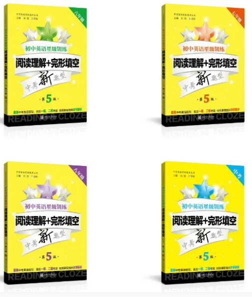 词汇量越大,平时所积累的固定搭配、常用表达越多,则解题越迅速。借助语法分析来帮助理解句子、推测语境、判断搭配等等,在完形填空中是必不可少的。 .每册书都有40个test,每个test有6篇阅读材料:选词填空(2篇)、选择类阅读理解、完形填空、首字母填空和问答类阅读理解。