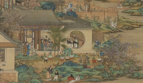 清院本《十二月令图》之九月赏菊(局部) (台北故宫博物院藏)