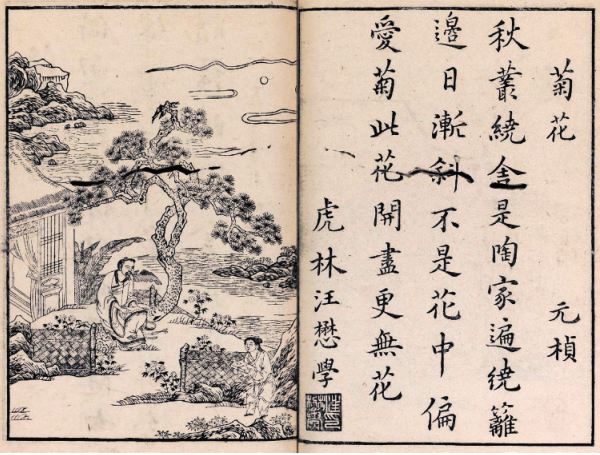 元稹《菊花》诗意图 出自明代黄凤池辑《新镌七言唐诗画谱》