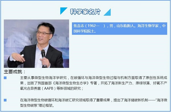 1979年,焦念志考入山东海洋学院,此后,他在蔚蓝的山东半岛度过了漫长的求学生涯,逐渐成长为一名专业的海洋科学工作者。20世纪90年代,他赴日本东京大学做博士后研究,又在美国麻省理工学院进行访问,国际化、全球化的视野展开,他将目光投向海洋中的微型生物以及它们在海洋碳循环和全球气候变化中的作用。