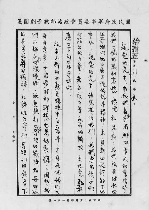 战地家书字字千钧 “为国家民族死之决心,海不清,石不烂”