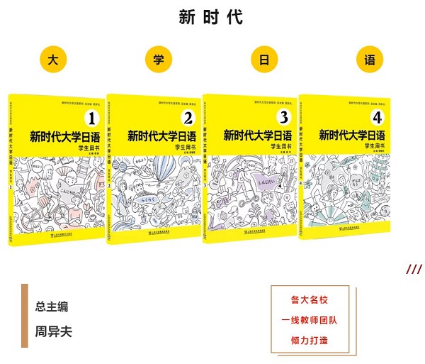 “新时代大学日语”系列教材由北京外国语大学周异夫教授担任总主编,率领吉林大学、北京外国语大学、大连大学等高校中日教师经过反复修订、多次凝练,历时3年打造而成。