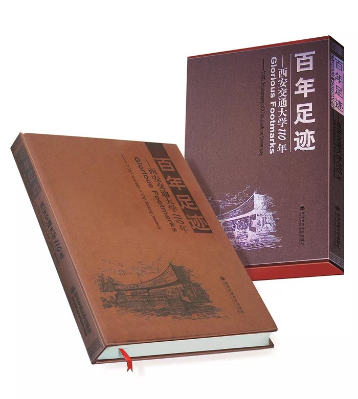 《百年足迹》的设计即采用了交通大学校门的手绘图。百年来,时代一直在变,灵魂依旧如初,图书整体达到了一种以心写情的佳境,是基于厚重情感迸发而成的宁静与雅致,是书卷飘香的现代派作品。