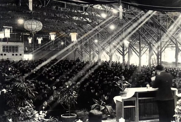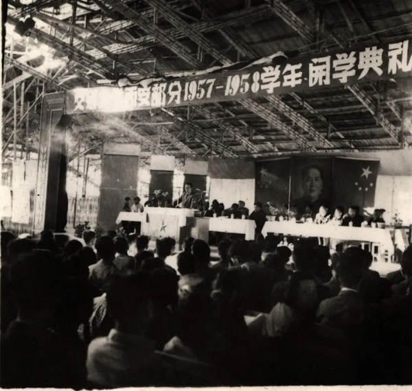 草棚大礼堂要算迁校后艰苦奋斗精神的一个象征。