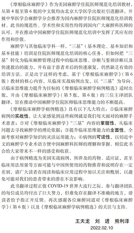 自北京大学医学出版社2016年引进出版《摩根临床麻醉学》以来,这部在全球麻醉学领域广受欢迎的教材已经陪伴我国广大读者走过了六年。这本书是中华医学会麻醉学分会住院医师规培的推荐教材,被誉为麻醉学领域最好的入门书。