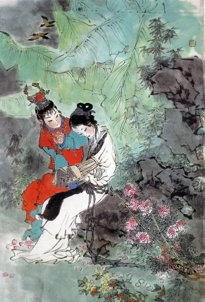 (当代画家戴敦邦手绘贾宝玉与林黛玉)