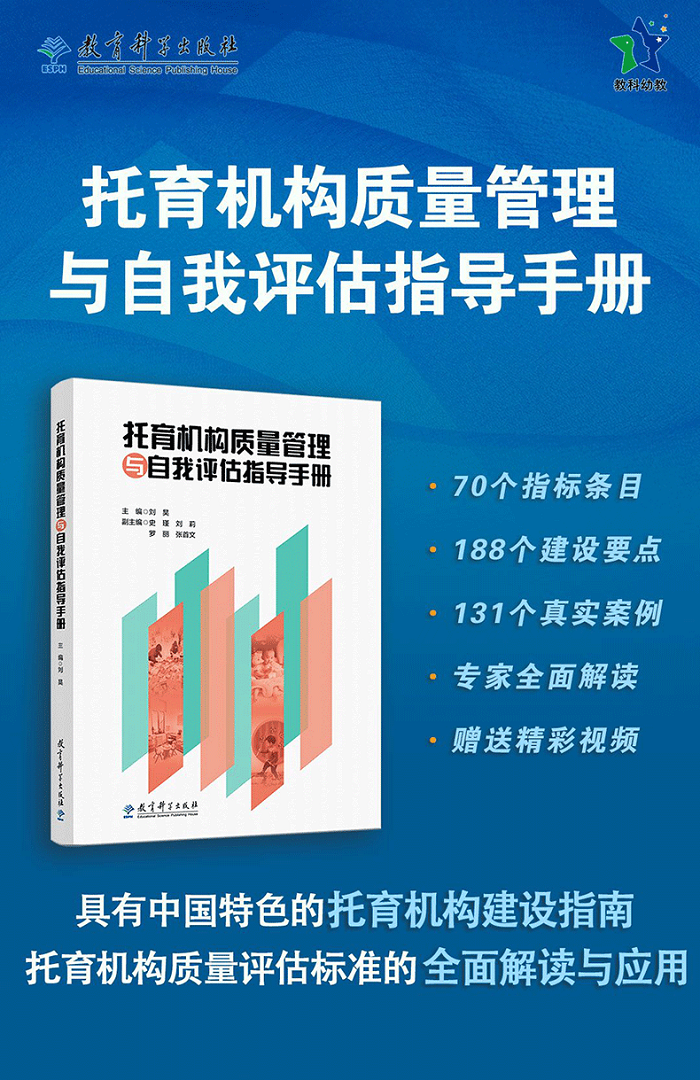 北京市卫生健康委员会高度重视托育机构的质量评估制度建设。2020年6月,北京市卫生健康委员会通过招标,公开选择研制北京市托育机构质量评估标准的团队。我有幸作为专家组组长参加了相关的评审活动,最终我们选择了首都师范大学刘昊博士团队承担相应任务。我很高兴地看到,在支持政府部门作为托育服务的监管方完成质量评估标准的开发之后,刘昊博士团队又从托育服务的实施方角度,开发了指导托育机构质量管理与自我评估的工作手册,引导托育机构在持续的自我诊断、自我改进的过程中,不断提升质量。这是一个实用性、操作性很强的工具。当然,托育服务的需求方—家长也能从中了解托育服务重点关注的内容,更加恰当地提出需求。