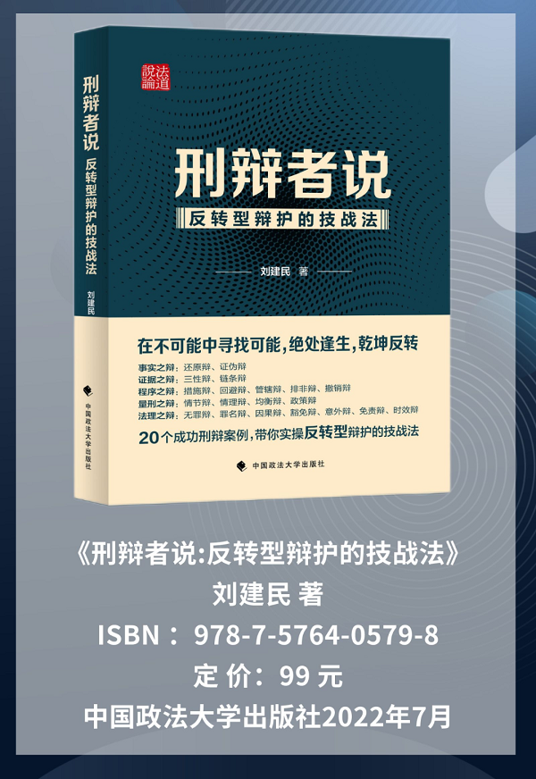 作者善于总结,从点到面、从案到理、从术到艺,并进行了体系化的思考,形成了“五个维度二十个辩点”的刑辩架构,有情有法,有据有理,生动而不落于肤浅,思辩而不落于枯燥,熔情怀、文采、操行、理性于一炉,给人以启发,让人开卷有益、不忍罢手。