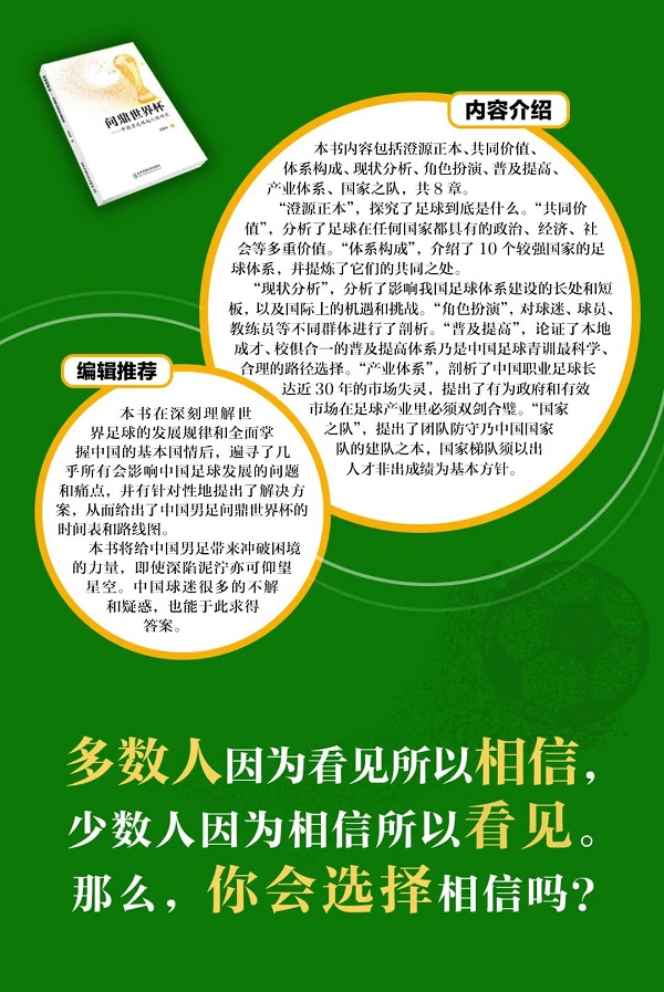 北京交通大学出版社适时推出《问鼎世界杯——中国男足崛起之路研究》,本书将给中国男足带来冲破困境的力量!