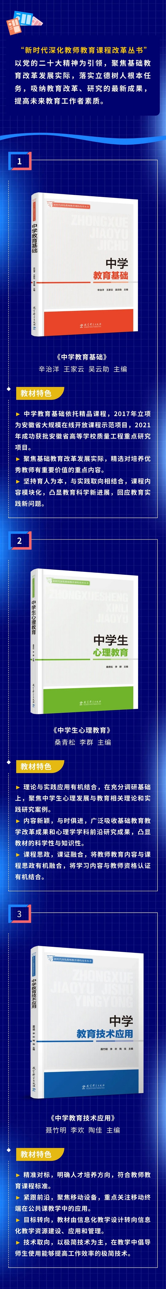 本丛书由《中学教育基础》《中学生心理教育》《中学教育技术应用》3本公共基础课程教材和12本中学学科教学论教材组成,集聚安徽师范大学教师教育课程教学团队及安徽省内其他师范院校专家团队的智慧和力量,既适合作为高等院校师范类专业的课程教材,也可供师范生和在职教师自主阅读。