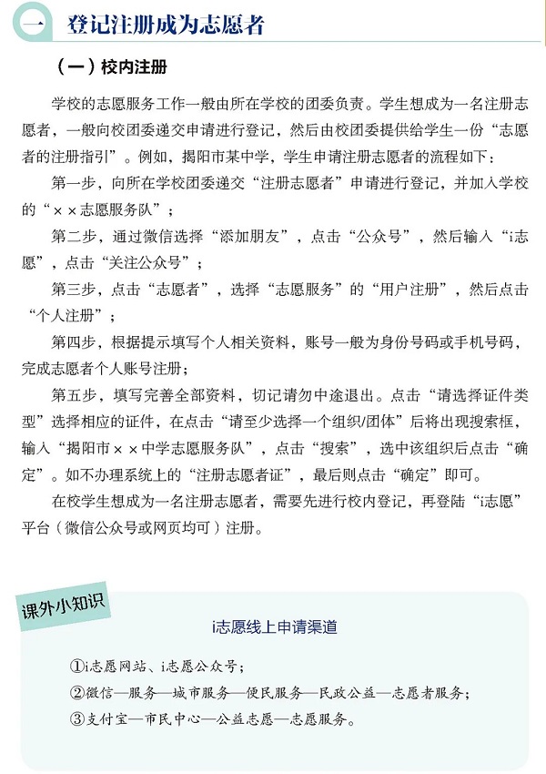 这不是“厚厚的”理论书,也不是“大大的”教科书,而是“贴心的”引导性读物,是吸引和指导中学生参加志愿服务的“入门书”。