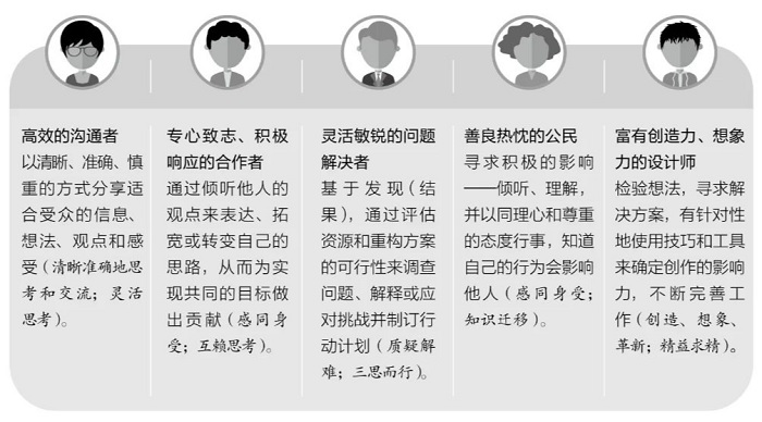 我们在律师、机械师、教师、企业家、艺术家、数学家等各行各业的成功人士身上都发现了优良的心智习惯。过去25年的研究表明,当学生养成这些优良的心智习惯时,他们就更有可能成为成功的学习者,会欣然接受21世纪及以后的各种挑战。如果我们希望学生在离开校园时能敢于接受各种挑战,我们就必须在基础教育阶段让他们有意识地养成这些行为习惯、掌握相应技能。如此,心智习惯的培养便成了教育的一大目标。例如,在康涅狄格州柏林公立学校的教职工与社区合作拟定学生的学习成果目标时,他们就将心智习惯与学习成果联系了起来。