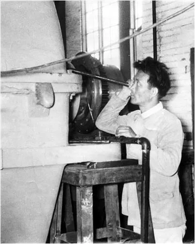 焦裕禄在洛阳矿山机器厂查看机器运转情况