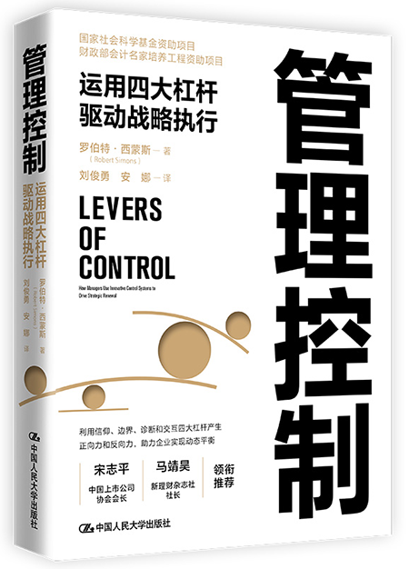来自哈佛商学院的罗伯特·西蒙斯教授在《管理控制》这本书里提出一个全面的理论以展示管理者如何利用信仰控制系统、边界控制系统、诊断控制系统和交互控制系统这四种基本杠杆来控制战略。平衡上述系统间的制约关系不仅依赖于这些系统的设计,更依赖于了解管理者如何有效使用这些系统。这四种控制杠杆是嵌套的,它们能够同时发挥作用但各有各的用途。它们的整体作用在于每个杠杆产生的制约。
