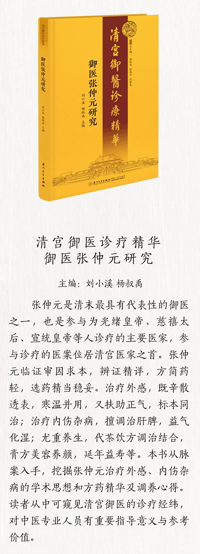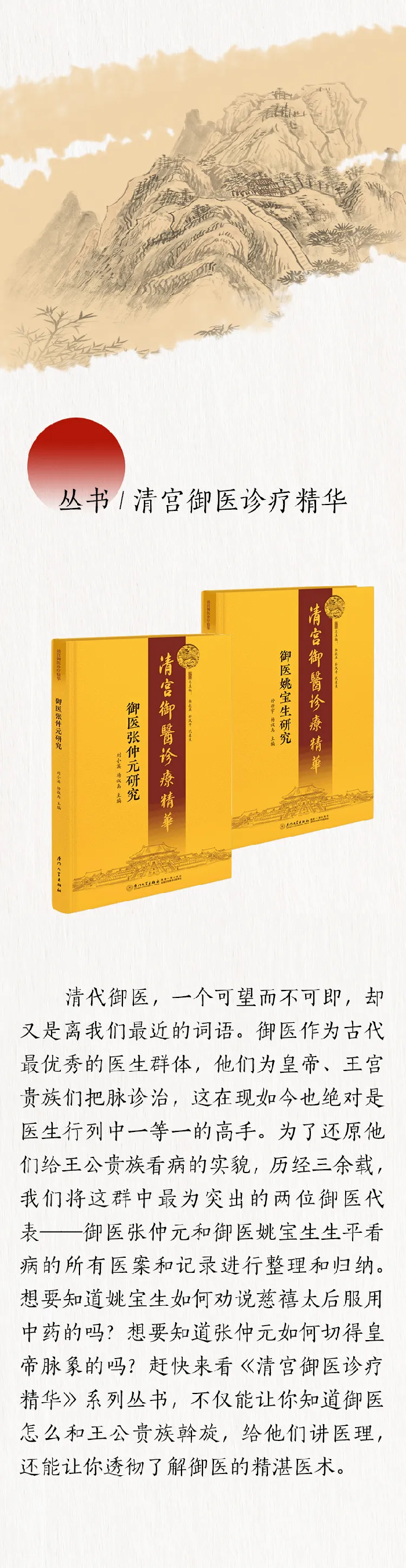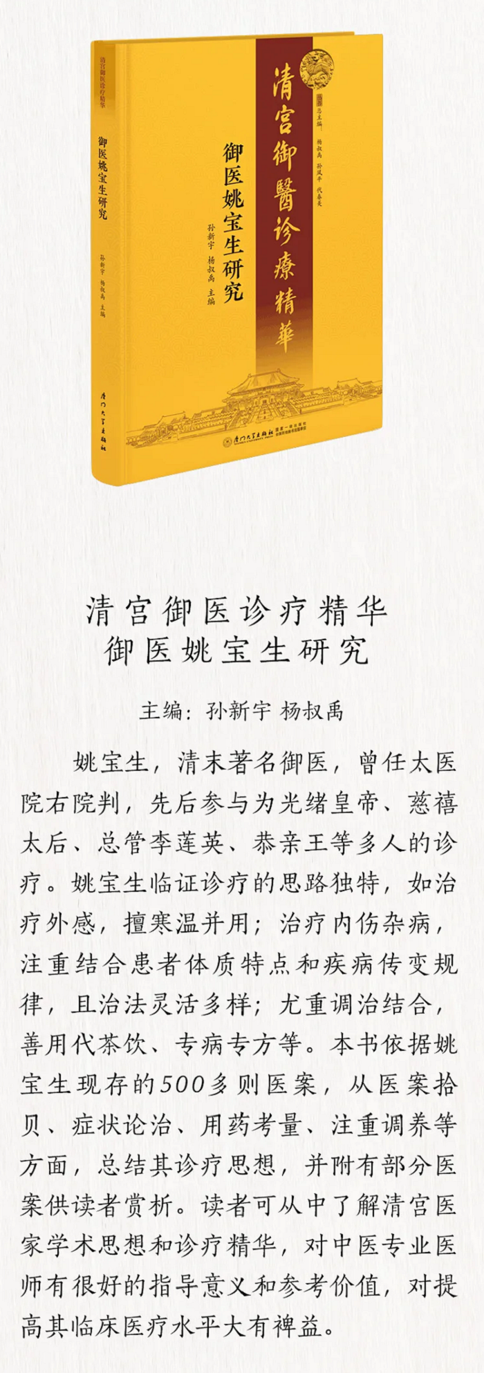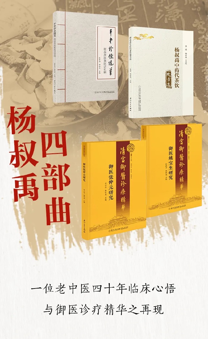 厦门大学出版社推荐名医杨叔禹四部曲:《平堂诊余随笔:杨叔禹医案医话初辑》《杨叔禹代茶饮处方选》《御医张仲元研究》《御医姚宝生研究》,以飨读者。
