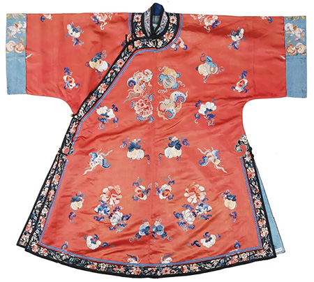 红缎地打籽绣瓜瓞绵绵女褂
