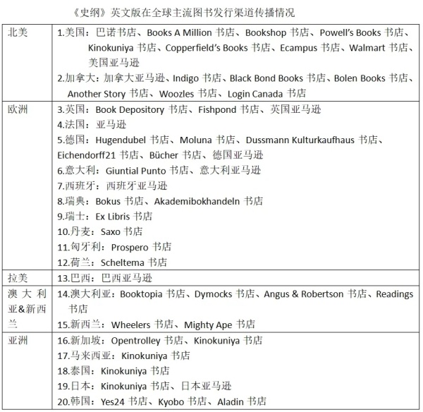 就市场影响力而言,该书销售已覆盖北美、欧洲、拉美、亚洲地区主流销售渠道,包括亚马逊全球销售网络、Kinokuniya书店全球销售网络、美国巴诺书店(Barnes&Noble)、加拿大Indigo书店、英国Book Depository、德国Hugendubel书店等,美国、加拿大、英国、法国、德国、意大利、西班牙、瑞典、瑞士、丹麦、匈牙利、荷兰、巴西、澳大利亚、新西兰、新加坡、马来西亚、泰国、日本、韩国等全球20多个国家的50余家书店。
